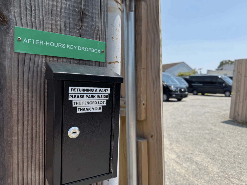 For after hours returns at our Richmond office, please park your van inside the fenced gravel parking lot. It’s ok to park in front of other vans, but please do not block the entrance!